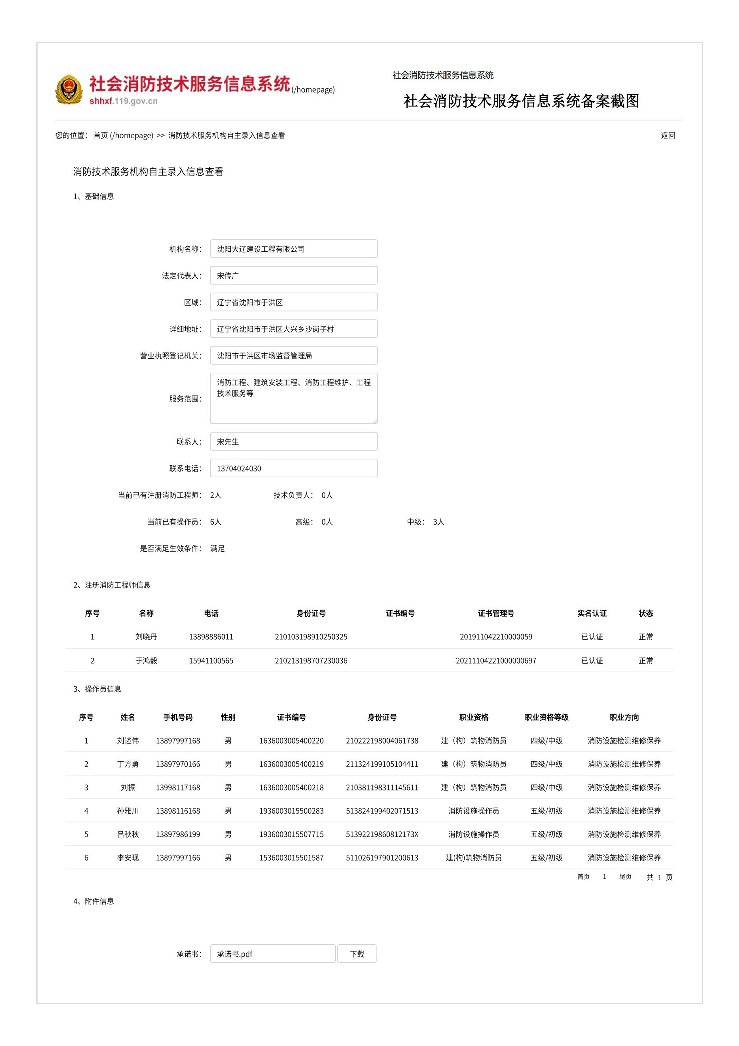 沈阳大辽建设资质-社会消防技术服务维保检测