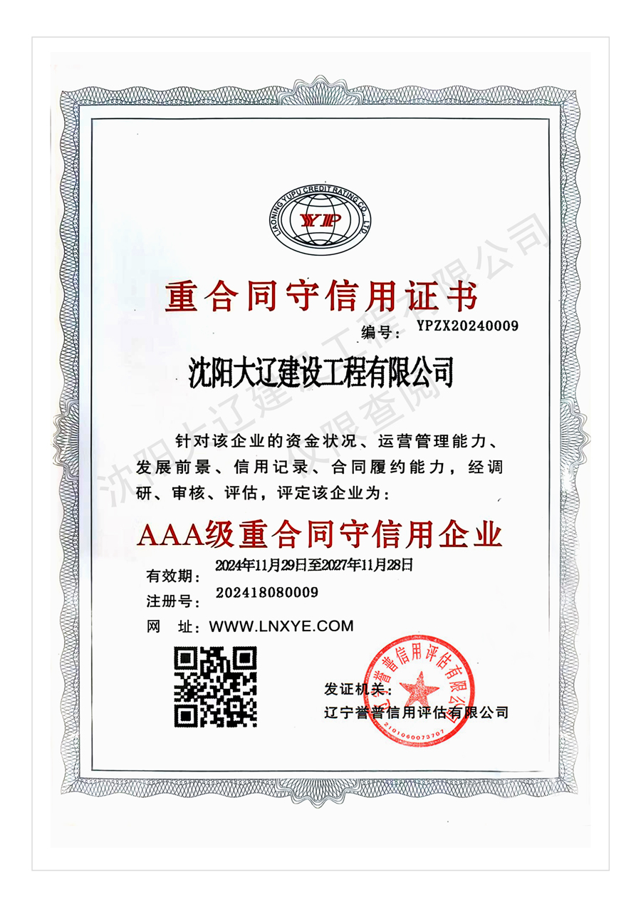 沈阳大辽建设资质-AAA信用等级